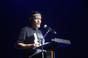 El músico Pablo Sandoval Hueche, conocido como Colelo, distinguido en Creación Artística con Identidad, Arte y Cultura Mapuche, sostuvo que “es maravillo poder obtener este reconocimiento, por venir de Padre las Casas y de una comunidad mapuche, estar presente en estos premios con un equipo de gente tremendo también, es ir avanzando. Nosotros como Colelo Identidad Mapuche desde más de 25 años dándole a la música, recibirlo a estas alturas es muy importante. Nuestra música es una herramienta de denuncia y significa que esto avanza, al momento de poder expresarse libremente. Como familia y equipo de Colelo Identidad Mapuche nos sentimos honrados y agradecidos y vamos a seguir. Esto motiva y abre espacios, sin duda, entonces vamos a seguir en nuestra senda”.