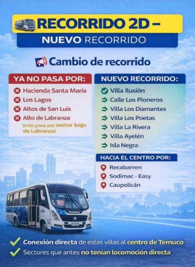 Aviso de de Utilidad Pública Microbuces N° 2 de Temuco
