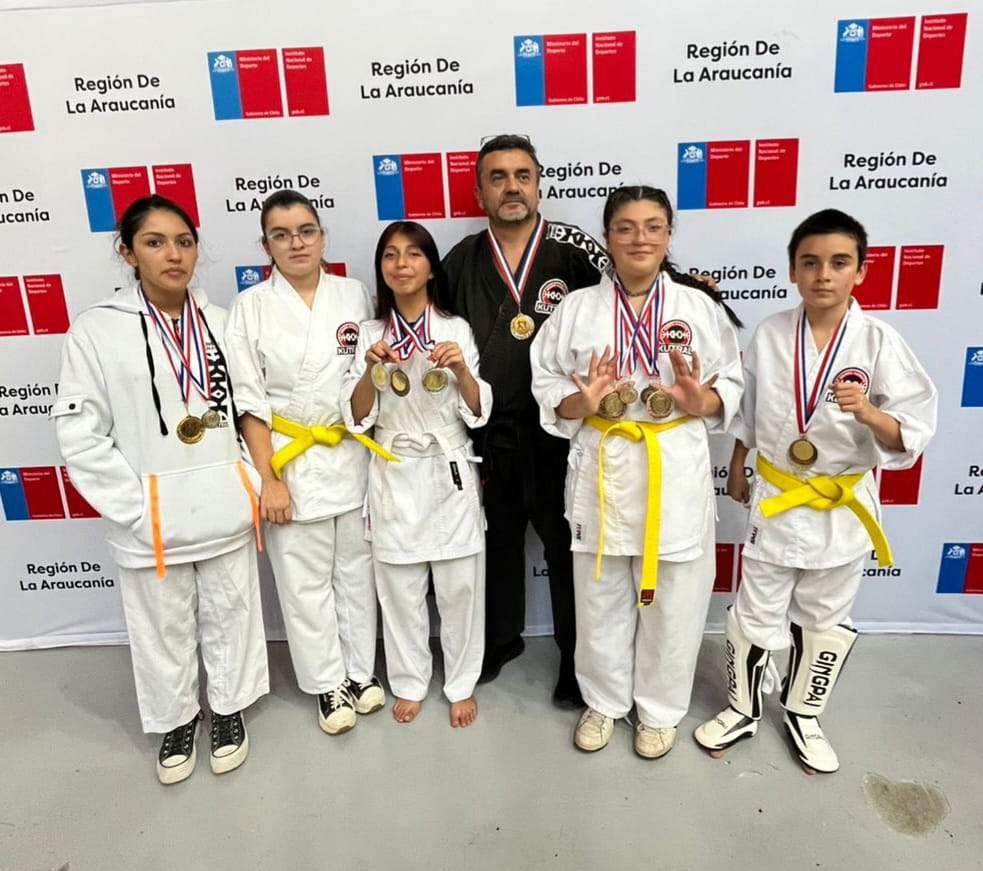 La delegación obtuvo podios en defensas, formas y combate en el torneo disputado en Pucón, consolidando el trabajo deportivo desarrollado en menos de un año.