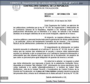 A través de un oficio —al que accedió la Unidad de Investigación de Bío Bío—, la jefa del organismo fiscalizador, Dorothy Pérez, pidió a la titular del Ministerio Secretaría General de Gobierno, Mara Sedini, aclarar las circunstancias del posteo.