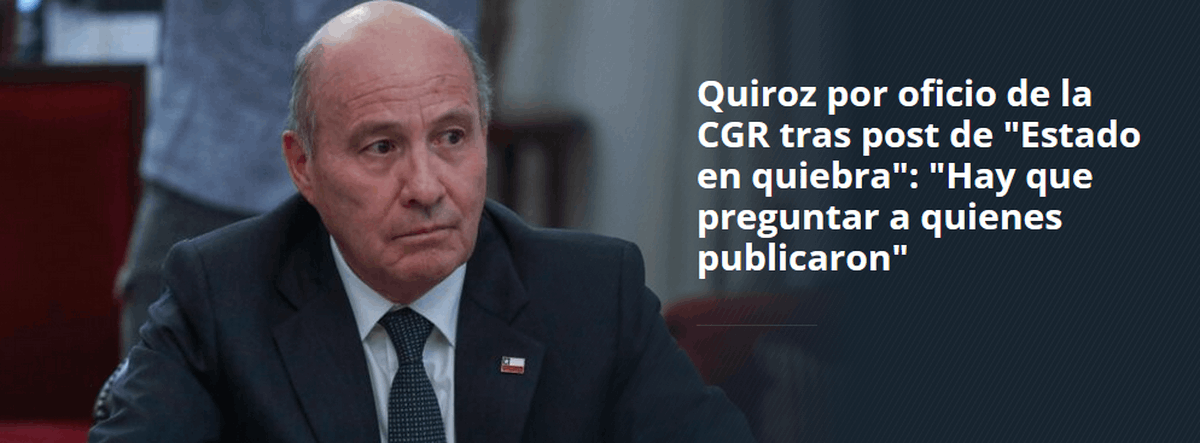 La Contraloría General de la República le pidió este miércoles explicaciones al gobierno, luego de que en sus redes oficiales difundiera información de que el Estado de Chile estaba “en quiebra”.