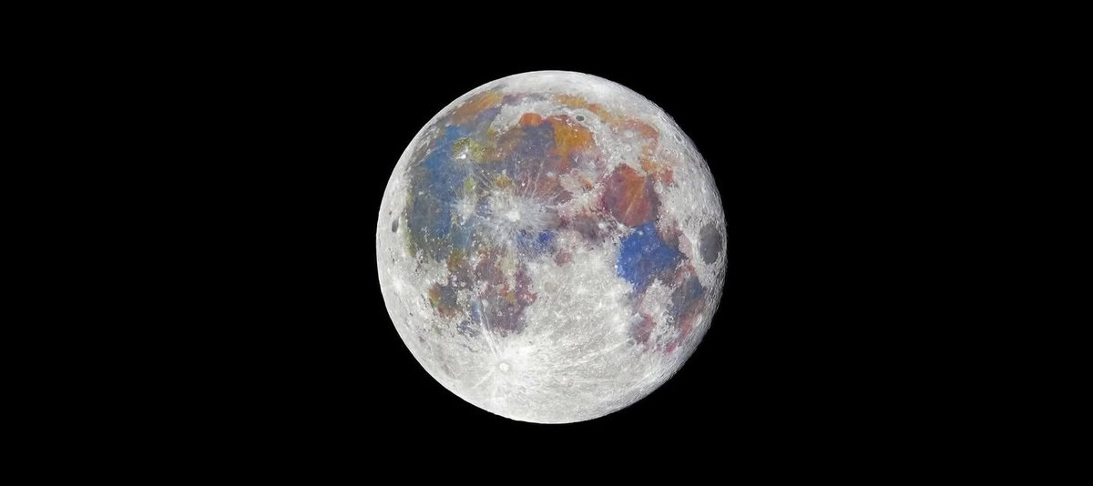 A simple vista la vemos gris, pero con la lente correcta aparece toda su paleta de colores: azul por el titanio, naranja por rocas antiguas y más hierro en la cara oculta.