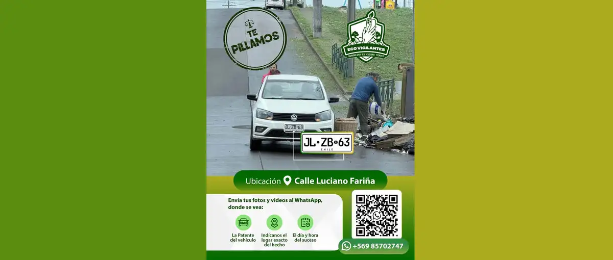 Gracias a denuncias de vecinos y el trabajo de nuestros equipos, detectamos a un vehículo arrojando basura en un punto no autorizado en calle Luciano Fariña de la ciudad de Temuco